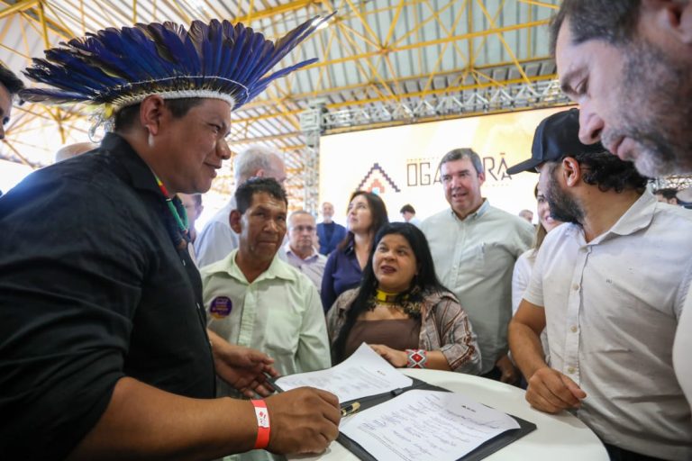 Com investimentos de R$ 55,1 milhões, serão construídas 581 casas para indígenas de 18 aldeias de Mato Grosso do Sul. As unidades habitacionais ficam nos municípios de Amambai, Aral Moreira, Caarapó, Dourados, Laguna Carapã, Maracaju e Tacuru. Para formalizar a construção nos sete municípios, o governador Eduardo Riedel e a ministra Sônia Guajajara (Povos Indígenas) participaram do ato e assinatura dos contratos, realizado na manhã desta sexta-feira (14), em Dourados.